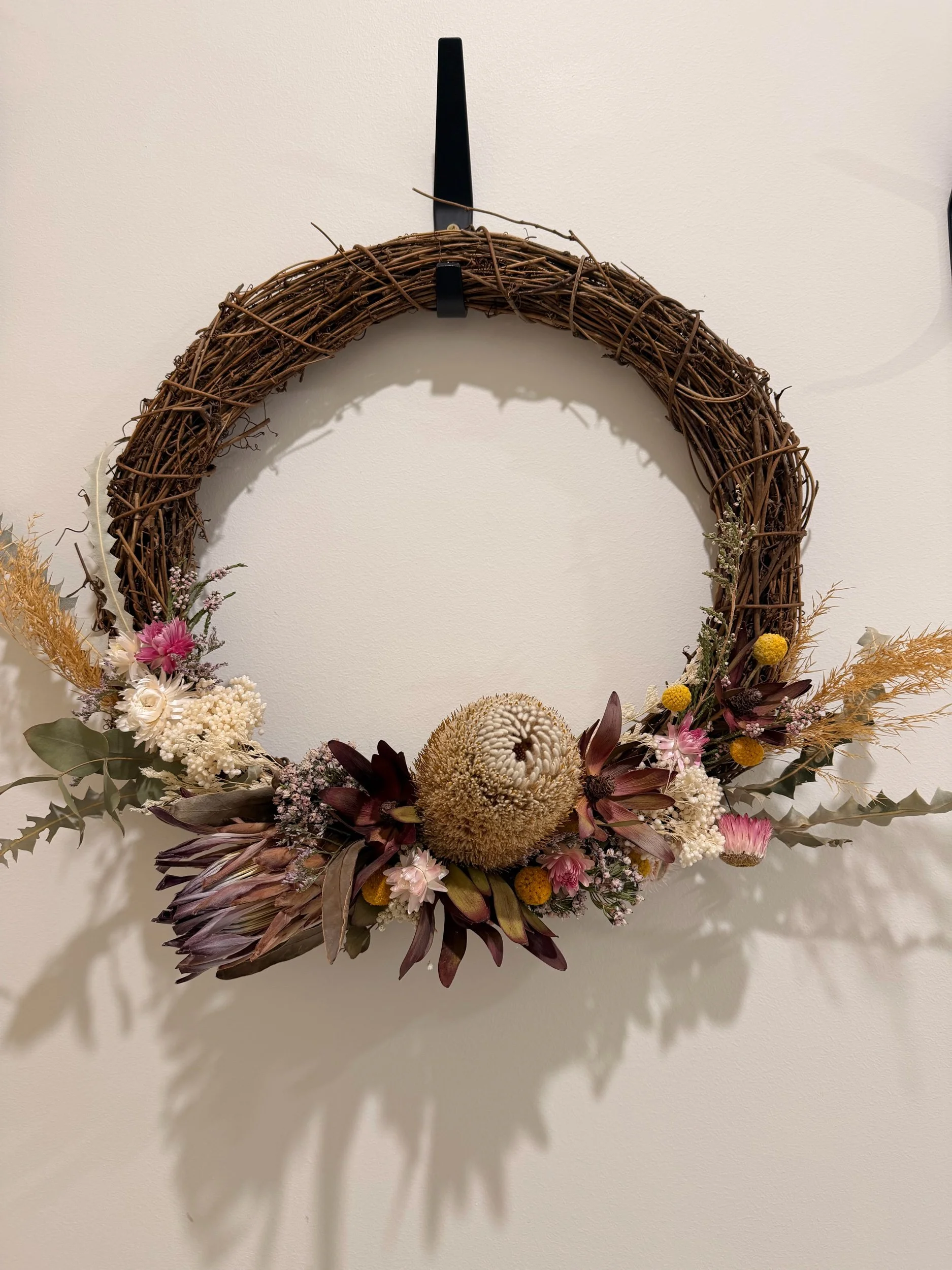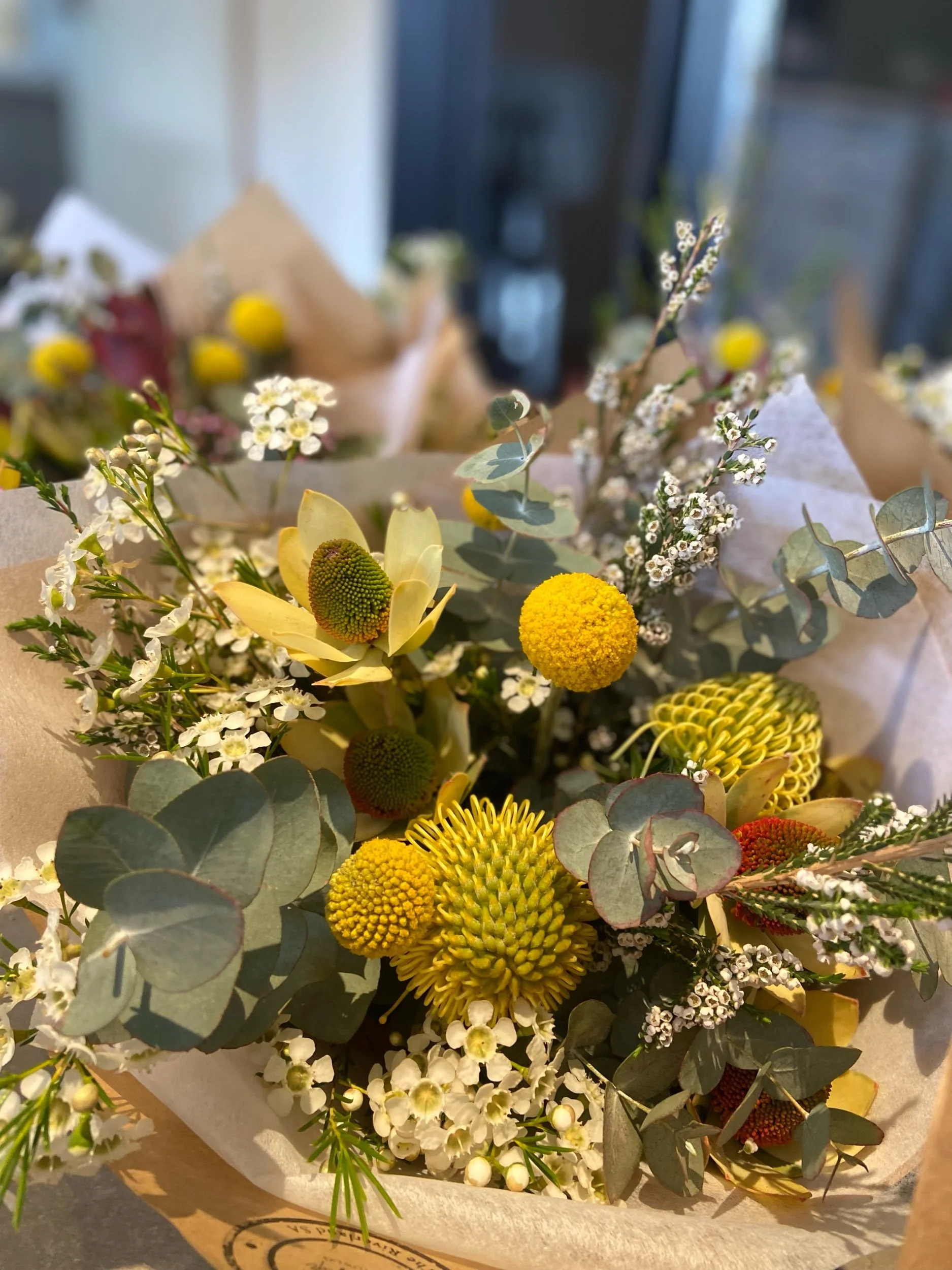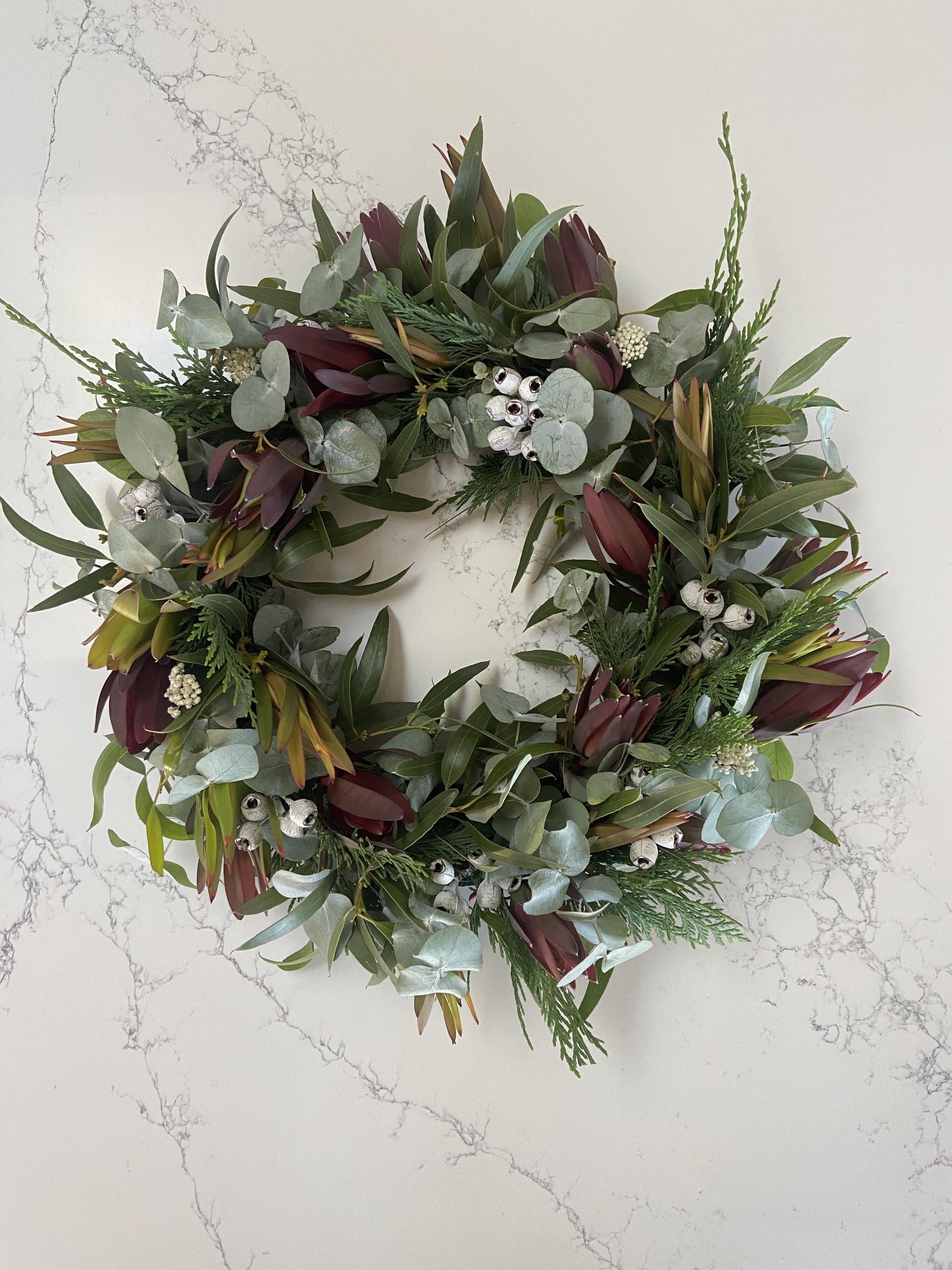 Pincushion bunches $45.00 Large Christmas Wreath (40cm) $90.00 Dried Christmas Wreath $90.00 Seasonal mixed floral bouquet $45.00 Sold out PRIVATE Wreath Making Event Sunday 14th $120.00 Sold out Christmas Workshop: wreath making Sat 13th Dec $120.00 Sold out Small season bouquet $35.00 Sold out Protea only vase arrangement $70.00 Sold out Large protea only bouquet $60.00 Sold out Large Vase arrangement: Florist choice $100.00 Sold out Extra large vase arrangement: Florists choice $120.00 Sold out Small mixed vase arrangement:: Florist choice $75.00 Sold out Large Mixed bunch; Florist choice. $65.00 Sold out Fresh eucalyptus gum: large wrapped bunch $28.00 Ongoing flower subscription $120.00 Sold out Dried vase arrangement $65.00 Sold out Gift voucher from $50.00 Small Christmas Wreath (25cm) $65.00